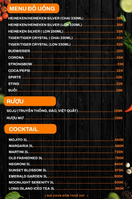 Menu quán bar